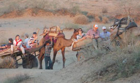 Spread over 6000 acres, the forest of Gajner was transformed into a famous shooting reserve for sand grouse when Maharaja Ganga Singh of Bikaner built the palace next to the Gajner Lake. Sir Ganga Singh was also an avid wildlife conservator. He introduced different breeds of deer and birds into the state sanctuaries, had wildlife preserves replanted, and ensured that wardens were posted to prevent poaching. There was a ban on hunting of animals during the breeding season and the killing of female animals and their young was strictly prohibited. Maharaja Karni Singh, grandson of Sir Ganga Singh, converted the hunting preserve of Gajner in to a wildlife sanctuary, a haven to endangered antelopes like the chinkara, black buck, blue bull as well as other rare animals. The sanctuary and lake attract more than a hundred species of migratory birds during the winter. Today you can shoot to your heart’s content, but with a camera.