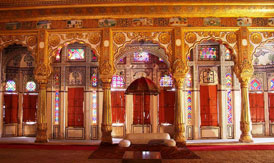 Phool Mahal (Flower Palace) is one of the most opulent and eminent period rooms in the Mehrangarh Fort. Visitors come here to catch a glimpse of the extravagant lifestyle of the erstwhile rulers. Built by Maharaja Abhaya Singh in the 18th century, it served as a pleasure room for female dancers during his reign. This room is beautifully decorated with its ceiling boasting of rich filigree of gold - plundered from Gujarat after the king's triumph over Sarbuland Khan, a Mughal Governor. At present, the room comprises a rare collection of paintings, royal portraits and the famous raga mala paintings. The Phool Mahal in Jodhpur (Flower Palace) remains intact to this date, with its gold filigree ceiling and stained glass windows. Sileh Khana has a collection of the varied weapons including gem-studded shields and armours for war elephants. A visit to this place will take you back in time to the era of Rajputana glory.