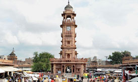 A major landmark of Jodhpur, the area around the Clock Tower or Ghanta Ghar , is a vibrant market place and offers its visitors an exciting shopping experience. You can shop here for the finest variety of spices. Mathaniya's red chili is famous for its dark red colour and is a must buy. Other things to look out for include hand-embroidered fabrics, handicrafts, antiques and flavoured teas. Also, indulge in Makhania lassi (buttermilk), Shahi samosa and omelettes for a true Rajasthani experience. In fact, people would tell you that the lassi at Clock Tower is considered to be the best lassi in the world. The century-old clock tower is an old city landmark surrounded by the vibrant sounds, sights and smells of Sardar Market, which is marked by triple gateways at its northern and southern ends. The narrow, winding lanes of the old city spread out in all directions from here. Westward, you plunge into the old city’s commercial heart, with crowded alleys and bazaars selling vegetables, spices, sweets, silver and handicrafts.