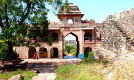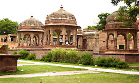 Mandore is located about 5 miles north of Jodhpur. It was the former capital of Maharajas of Marwar. Later it was abandoned for security concerns regarding the Mehrangarh fort. Its extensive Mandore garden, with high rock terrace, makes it a popular local attraction. The garden is open for tourists from 8 am to 8 pm. In the Mandore garden, there are the dewals or cenotaphs of Jodhpur's former rulers. Instead of the usual chhatri-shaped cenotaphs typical of Rajasthan, the cenotaphs of the famous Mandore garden of Jodhpur, Rajasthan are built along the lines of a Hindu temple. They are four stories high, with fine columns and an elegant spire, all in red sandstone. The most impressive dewal is the dewal of Maharaja Ajit Singh. These cenotaphs are set in beautiful landscaped gardens. The cenotaphs of the Maharani are set on a rocky outcrop over the hill.